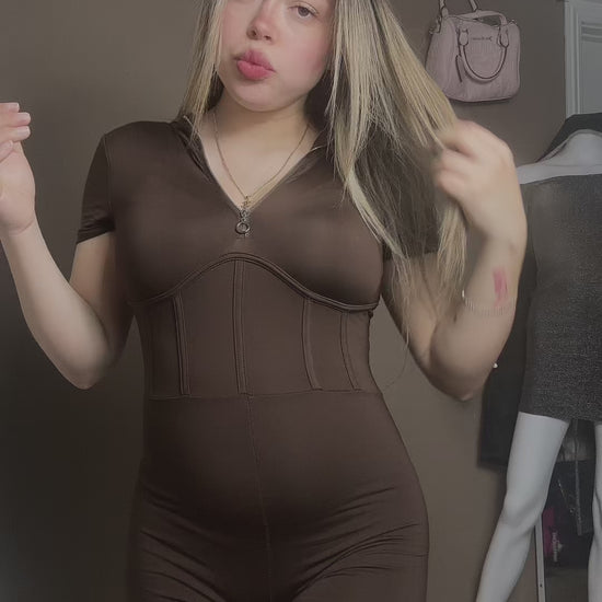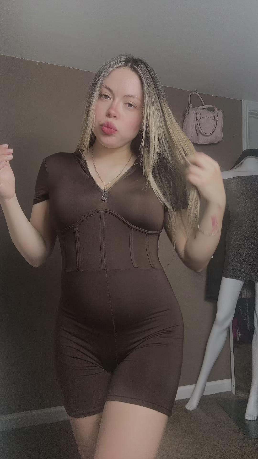 This stretchy, body-hugging romper snatches your waist, lifts your shape, and moves with you. Featuring a front zipper detail, corset-style seams, and a soft, smooth fabric that feels amazing on the skin.