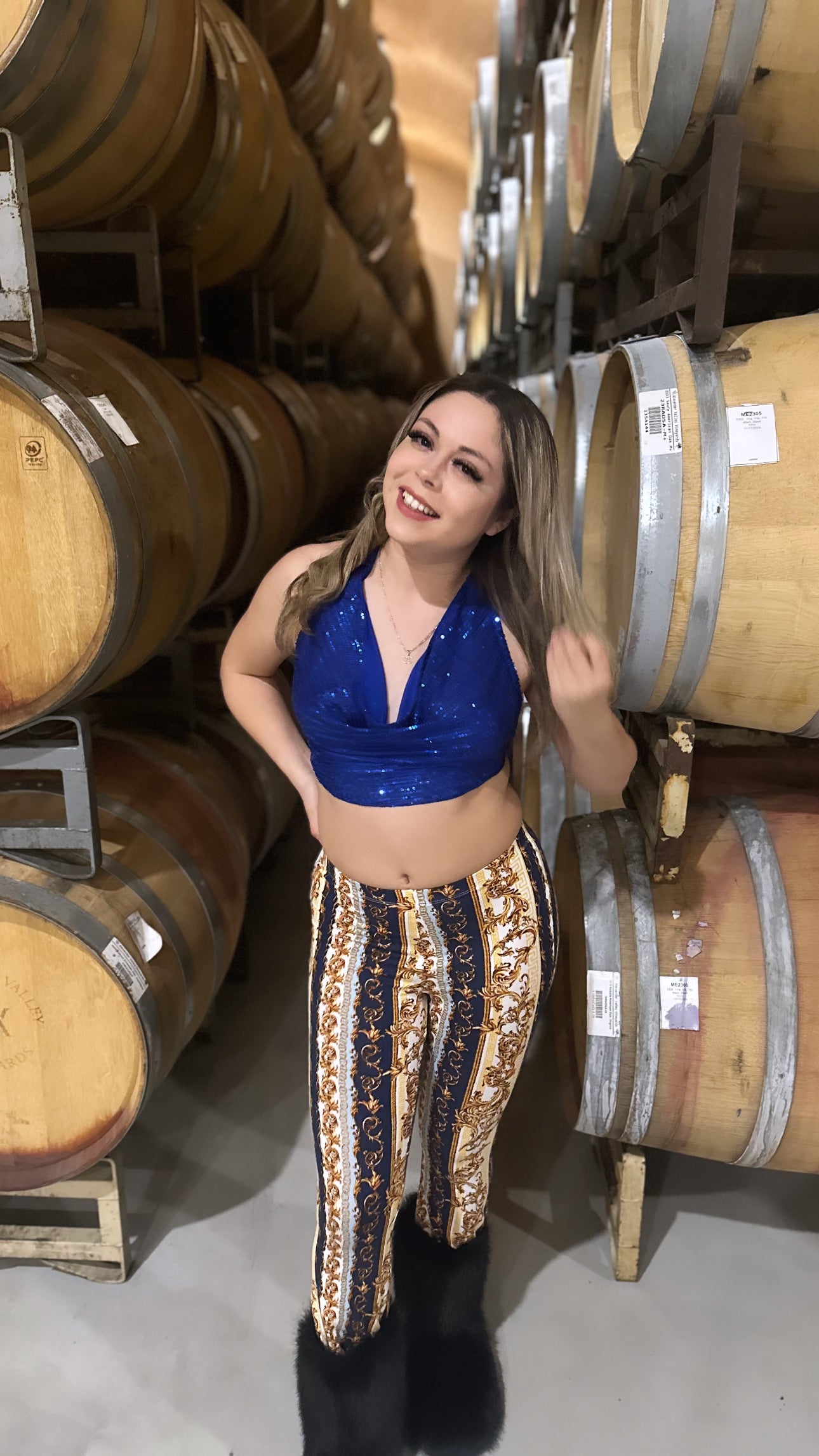 - Royal blue sequin crop top